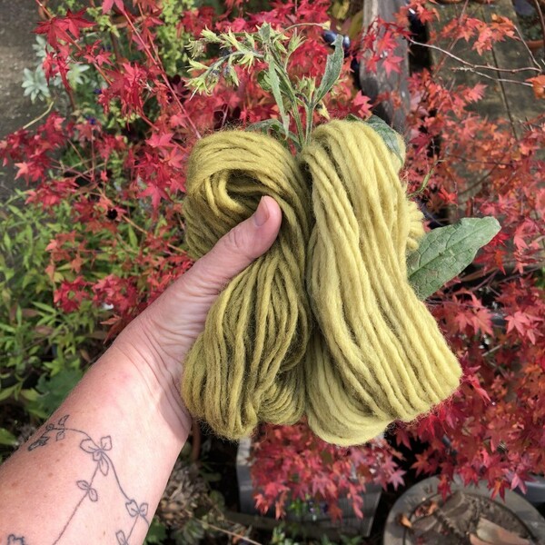 Tijdens de workshop vertelt Elma je alles over hoe je te werk kunt gaan als je wol wil verven met planten. Verder gaan we met verschillende verfplanten 5 strengen wol verven , de geverfde strengen wol neem je na afloop mee naar huis.
