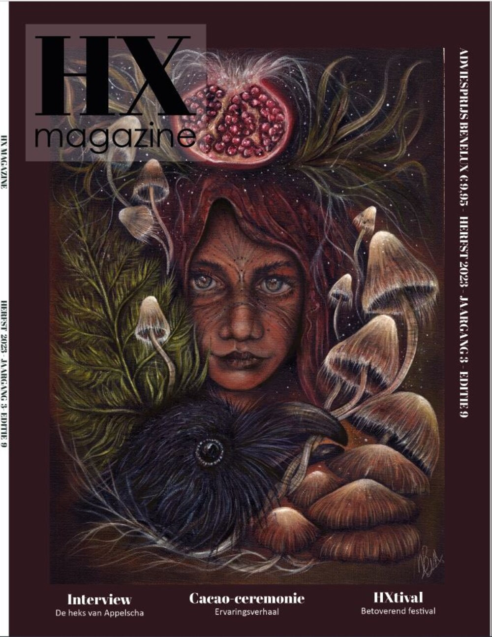Op de cover vind je dit keer een illustratie, of mogen we zeggen kunstwerk van Meg Lemmens van Spirits & Beings. Zij zal de hele derde jaargang de covers voor ons maken. Met wederom vaste gezichten zoals Susan Smit, Lunadea, de Kruidenheksen, Jan Roossien, Madam Elisabeth en Coby, de Wolderse Heks. Maar ook nieuwkomers zoals Maarten Oversier, waar je al eerder een interview van kon lezen en Ivonne Voigt. Je leest interviews met de Heks van Appelscha, Hermelijn van der Meijden en medium Mieke, maar ook het indrukwekkende verhaal van Callum en gingen we gezellig op bezoek bij Fleurtje. Deze keer hadden we een intense cacao ceremonie waar we openlijk over vertellen. We hebben aandacht voor de Jaarfeesten, voor de kracht van planten, heksenhistorie en natuurlijk weer de maanvoorspellingen van Wendy van Lovely Blessings en écht nog veel meer!
